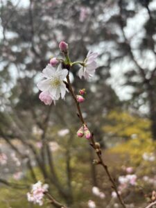 御所では桜がちらほら咲いていました。 暖かくしてお出掛けくださいね。